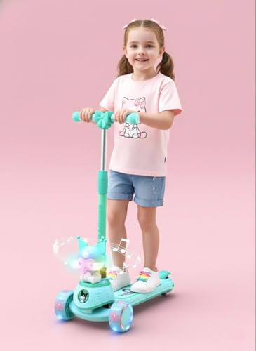 Generic - Kiromi Kids Scooter, 3-Wheel Design, Adjustable Height, LED Lights & Music, Mint Green, Ages 3-12 Years
