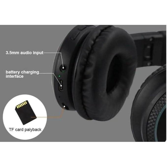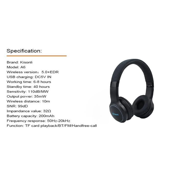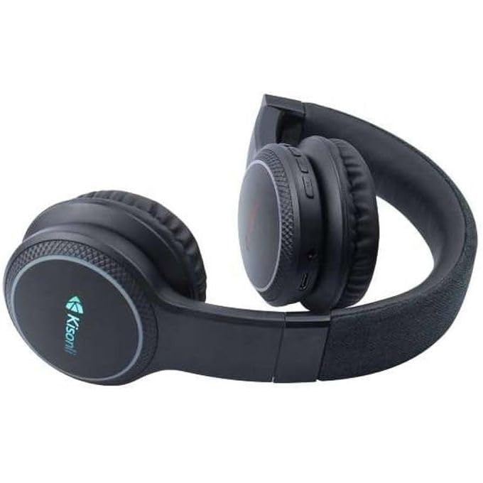 Kisonli - Kisonli - Fabric Wireless Headphones with Multi-Color Lighting - Up to 20+ Hours Playtime, TF Card & AUX A6 - Black