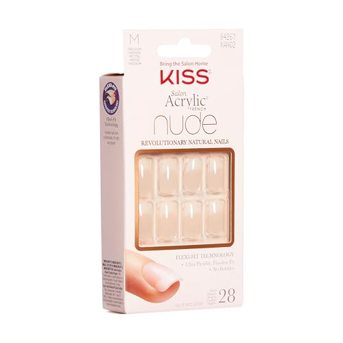 Kiss - اظافر صناعية فرنسية اكريليك متوسطة الطول، 28 قطعة من كيس - نود