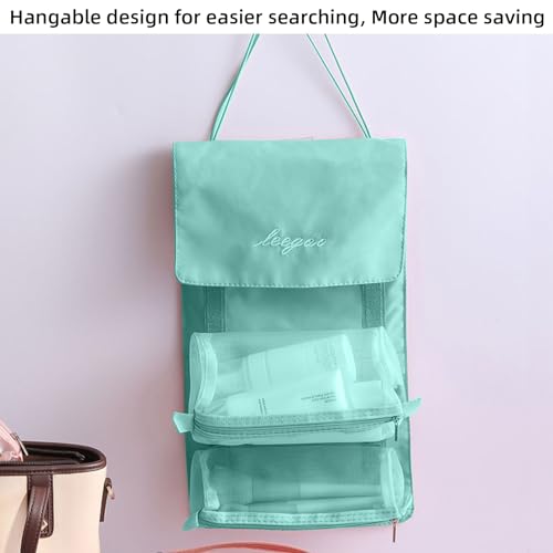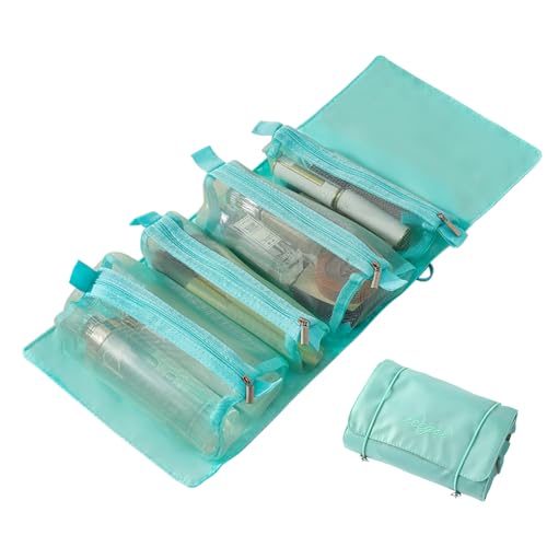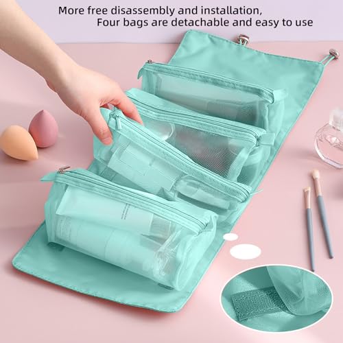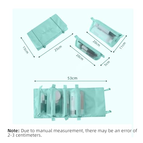 - 【Large Capacity】: This Detachable and portable travel bag organizer has 4 separable mesh toiletry cases ,can be used to store your travel products. This folding makeup bag can fit into any suitcase or carry bag easily.