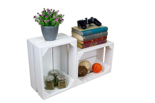 Kistenkolli Altes Land - Kistenkolli Altes Land Frieda Small Flamed Box Dimensions Approx. 30 x 22 x 16 cm Wine Box Storage Box Gift Box Storage Shelf (1 Set Frieda White)