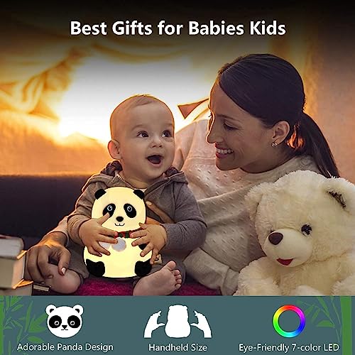 KISUASHI - Panda Night Light Nursery Silicone Night Light for Kids, USB Rechargeable with Colour Changing Night Light for Kids Bedroom Decor, Best Gifts for Girls, Boys, Babies, Toddlers.