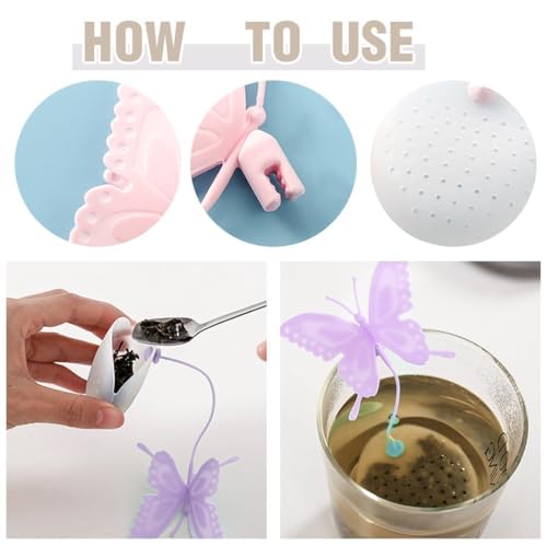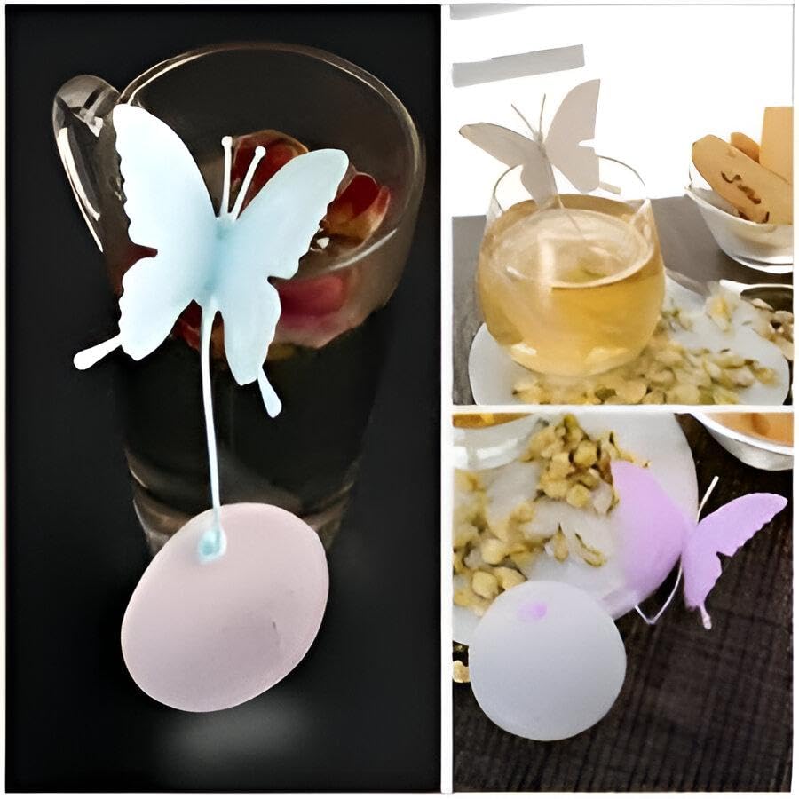Generic - اكسسوار مطبخ - مصفاة شاي انيقة من السيليكون على شكل فراشة للاعشاب والتوابل، امنة وقابلة لاعادة الاستخدام وصديقة للبيئة وتضيف الأناقة الى الطهي، متوفرة بالوان متعددة