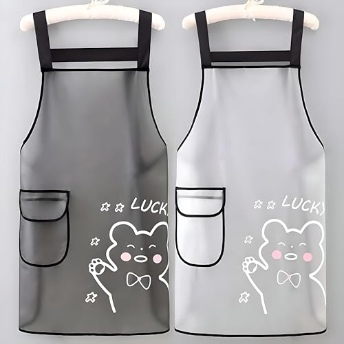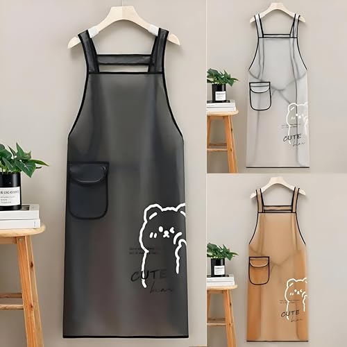 Generic - Kitchen apron-A transparent kitchen apron designed for women, with a waterproof and oil-resistant layer and waist-tightening, suitable for multiple uses.