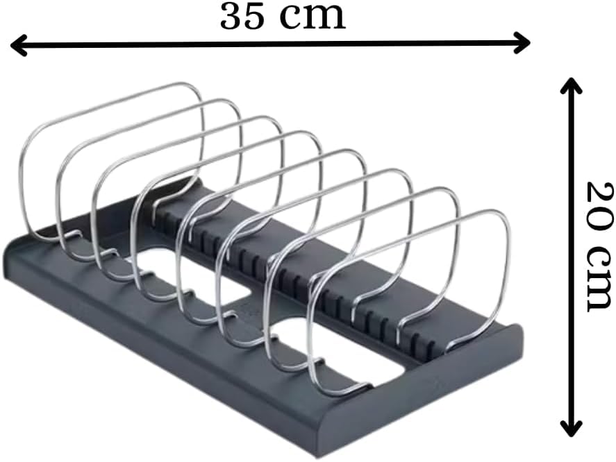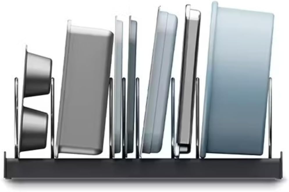 - STURDY CONSTRUCTION: Durable metal dividers and stable base ensure reliable support for heavy cookware items without tipping or bending