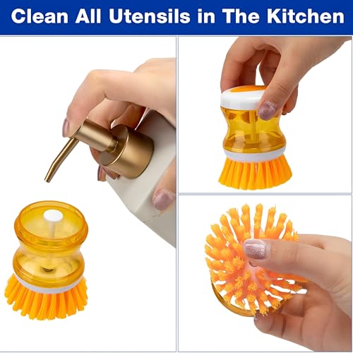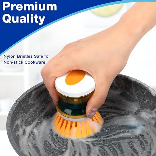 Generic - منظف المطبخ - فرشاة طبق أجهزة كمبيوتر مع موزع صابون مدمج ، مثالي لتنظيف الأطباق والأواني والمقالي ، وتعزيز روتين تنظيف المطبخ (برتقالي)