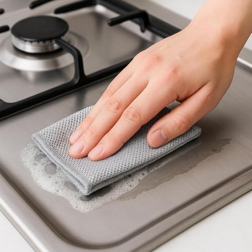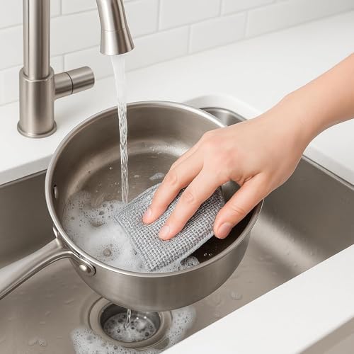 - ✅【Dual Function Scrubbing Surface】 This cleaning pad integrates a textured stainless style scrubbing layer with a smooth fabric wiping layer allowing strong removal of stuck food stains and gentle surface cleaning using one compact tool without switching between different cleaning products during kitchen tasks. 💪