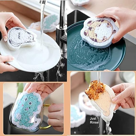 - 【Cute Cleaning Sponge】 Having a cartoon shaped sponge wipe makes you feel good even when you face the boring dishwashing chore; The cute and interesting sponges with high cleaning ability make the kitchen full of fun.
