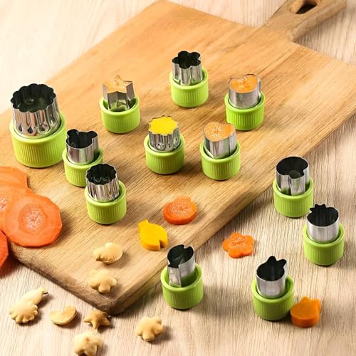 - This versatile set of nine food cutting molds, crafted from high-quality stainless steel and food-safe silicone, offers a wide variety of shapes and sizes to enhance your culinary creativity. The simple, easy-to-clean design with rounded edges ensures safety and comfort during use, whether you're making cookies, cakes, or decorating fruits and vegetables for kids' lunchboxes or festive displays. dishwasher safe and resistant to rust, these molds are durable for long-term use, encouraging fun and