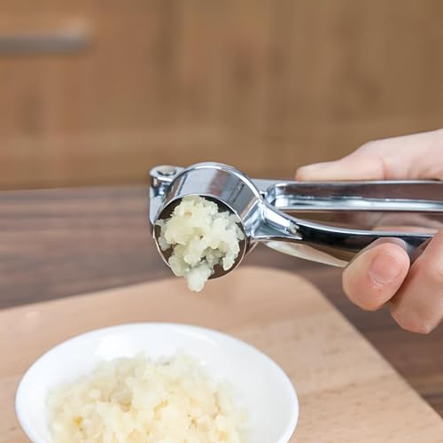 • Crafted from high-quality stainless steel, this garlic press is not just built to last but also ensures easy handling while preparing garlic and ginger. Its sturdy construction can handle even the toughest cloves with ease, enhancing your cooking experience for years to come.
