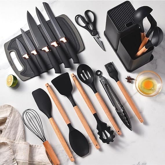 - مجموعة أدوات طبخ شاملة مكونة من 19 قطعة.