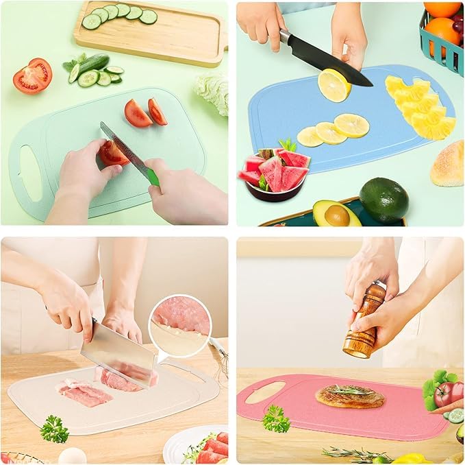 Generic - مجموعة الواح تقطيع للمطبخ، 4 قطع، بلاستيك ملون، 13.2 × 8.45 انش، خالية من BPA، مقبض مانع للانزلاق