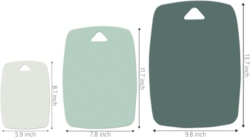 - 👨🍳【Three Sizes to Meet Your Cutting Needs】Our three sizes of cutting boards can improve your efficiency in the kitchen, large 13.7*9.8*0.2inch, medium 11.8*7.8*0.19, small 8*5.9*0.15, each All sizes are separate cuts designed for a certain type of food. Great for multiple meals or use throughout the day.