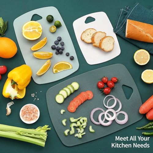 Generic - Kitchen Cutting Boards, Plastic Cutting Boards Set of 3 Non-Slip Backs and Dishwasher Safe, BPA Free Safe Cutting Boards, Easy to Clean Suitable for Meat, Vegetables, Fruits, Many Sizes (Green)