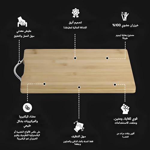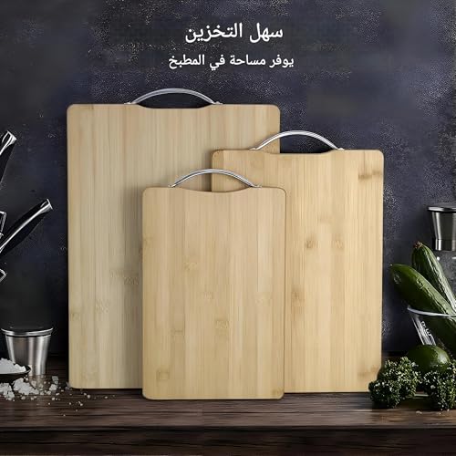 Generic - Kitchen Cutting Boards - Set of 3 Natural Bamboo Plates Featuring Durable Stainless Steel Handles, Waterproof Design and Various Sizes for Everyday Cooking
