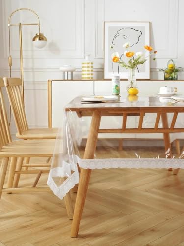 Generic - Kitchen Dining Table Cloth Heavy Duty Waterproof Oilproof Stain Resistant PVC Tablecloth with White Lace Border Clear Cover for Dining Table Kitchen Coffee Table Office Rectangle 1.83 x 1.37 Meter