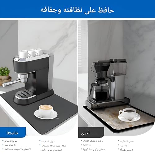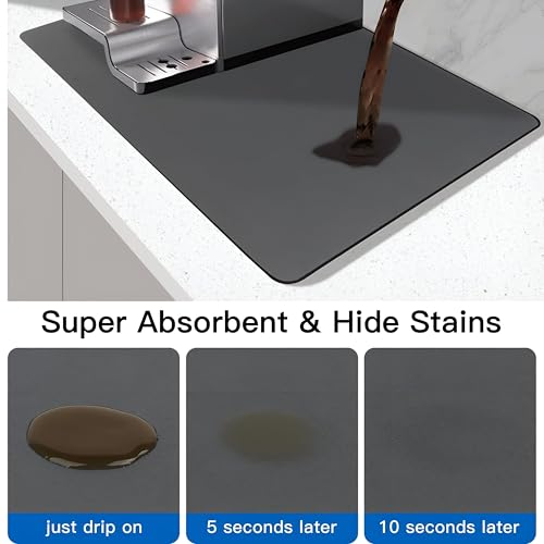 - Featuring advanced absorption technology and stain-hiding capabilities, this coffee mat is engineered to keep your countertops clean and pristine. Constructed from diatomite material, it rapidly absorbs water and coffee spills, preventing stains and messes. The polyurethane surface effectively conceals existing stains, maintaining a tidy appearance. This mat is a practical solution for coffee lovers, ensuring your countertops remain spotless and well-maintained.