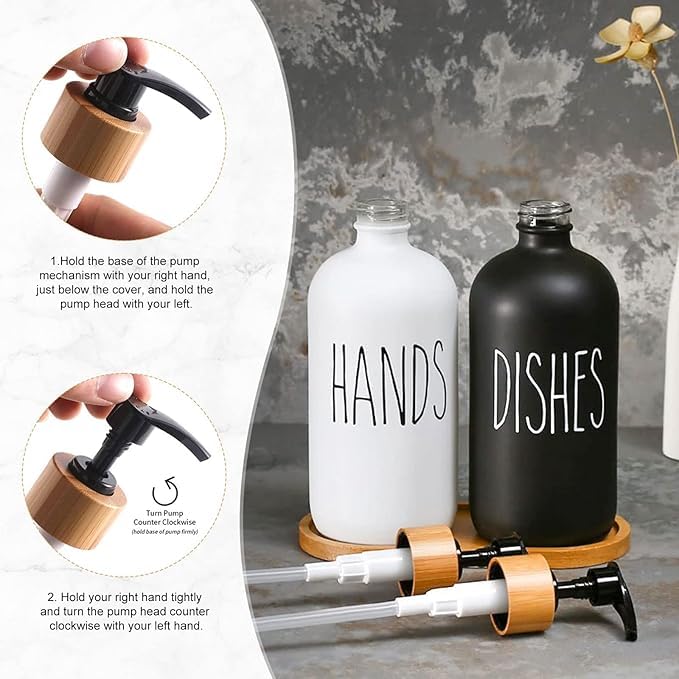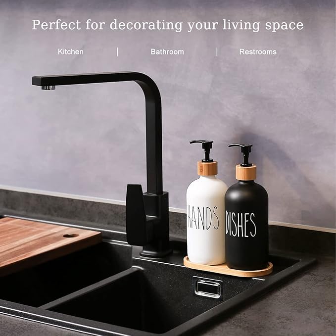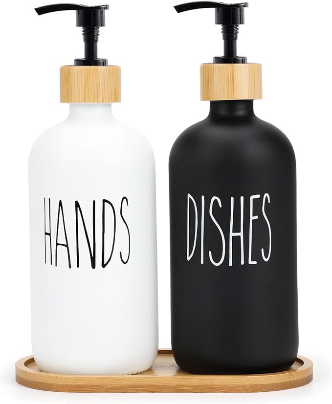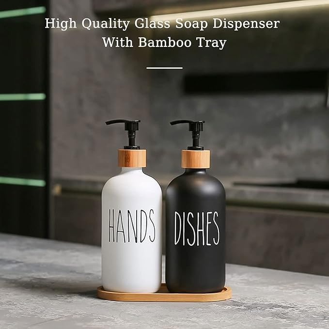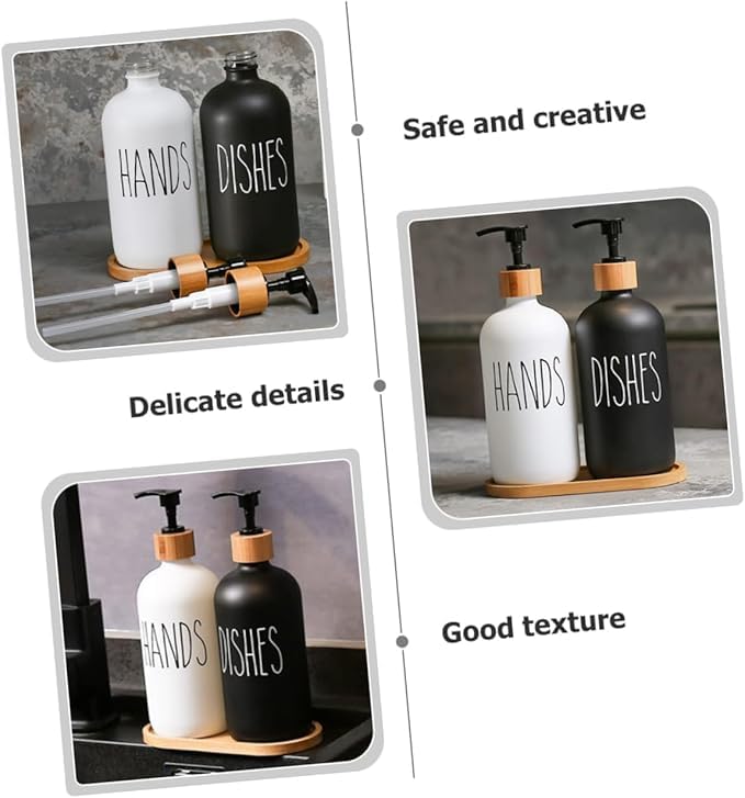 Generic - موزع صابون اطباق المطبخ، موزع صابون زجاجي مع مضخة وصينية سيليكون، موزع صابون اليد للحمام، موزع صابون للمنزل الريفي، مجموعة الحمام (موديل 4)