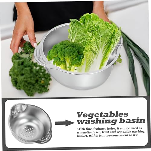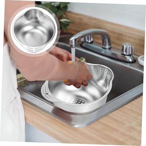 Generic - Kitchen Drain Bowl - Wash and strain ingredients efficiently with this sleek stainless steel bowl, featuring a V-shaped outlet for mess-free pouring and water control
