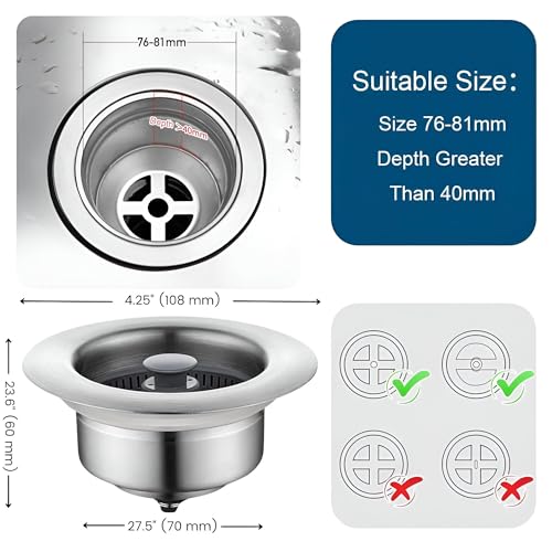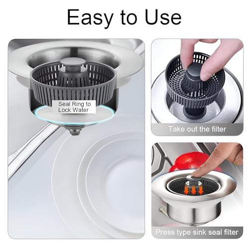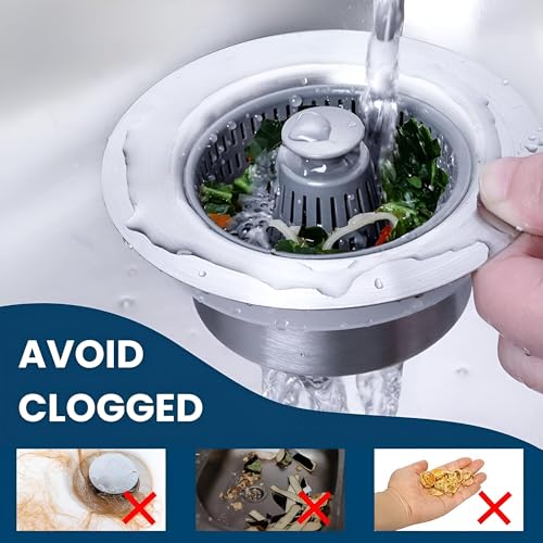 Generic - فلتر صرف المطبخ - قم بتحديث مطبخك باستخدام مصفاة حوض 3 في 1 متعددة الاستخدامات من الفولاذ المقاوم للصدأ والتي تتضمن سدادة منبثقة ومقبض مركزي لإدارة النفايات بسهولة ومنع الروائح، مقاس 7*5.5 سم.