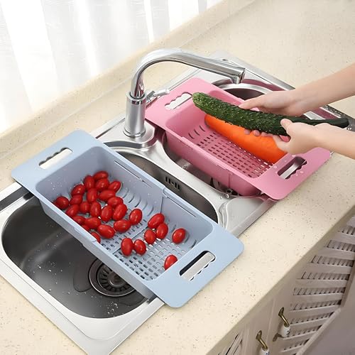 Generic - مصفاة مطبخ - سلة فلتر فواكه وخضروات متعددة الوظائف قابلة للتمدد، متينة وسهلة التنظيف، تصميم قابل للسحب مع خطاف مقبض، ملاءمة عالمية لاحواض المطبخ (4 قطع)
