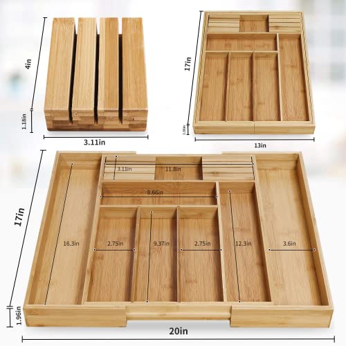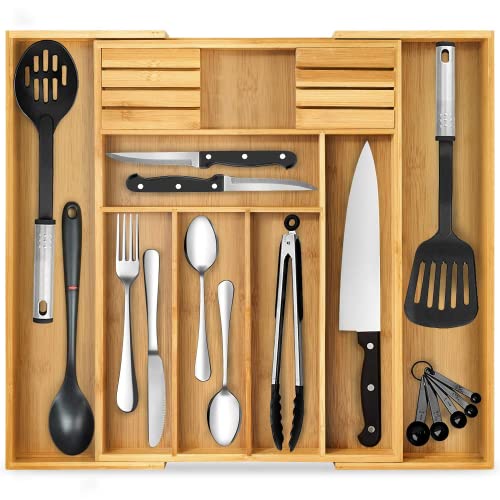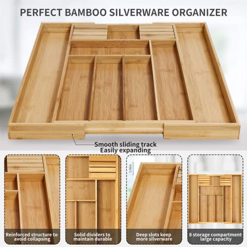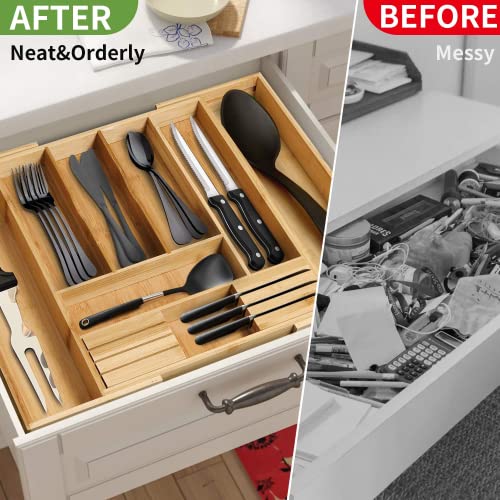 - 【Expandable Adjustable Utensil Organizer】The utensil tray drawer organizer is expandable from 13” to 19.6” Designed with 6-8 compartments, the silverware organizer can save space while accommodating multiple items