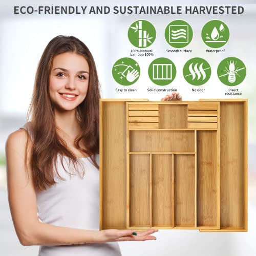 FZFHSJ - Kitchen Drawer Organizers Bamboo Utensil Holder for Cutlery Silverware Flatware