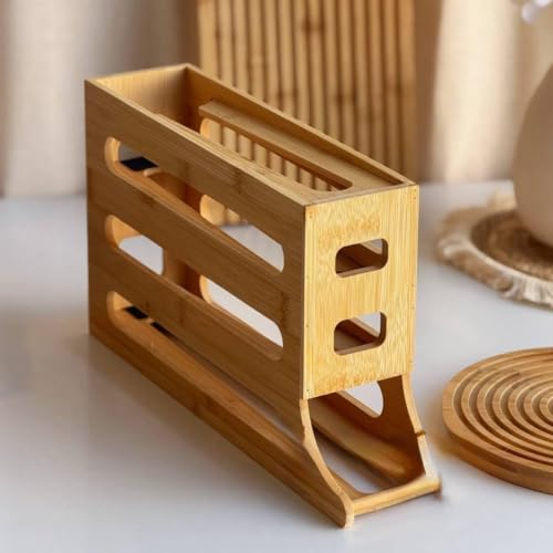 - Crafted from natural bamboo wood, this egg storage rack offers an eco-friendly and durable solution that resists wear and enhances kitchen aesthetics with its minimalist, organic finish.