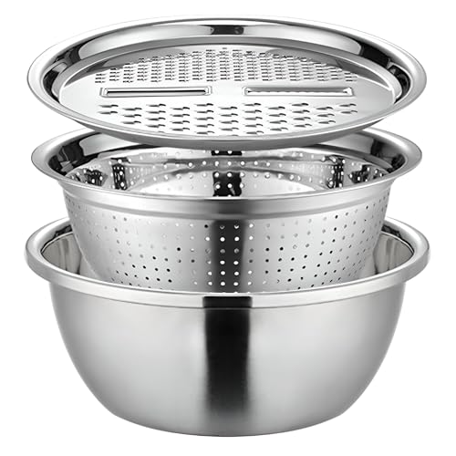 Generic - مبشرة مطبخ متعددة الوظائف 3 في 1 من الفولاذ المقاوم للصدأ مع سلة مصفاة خضروات ووعاء سلطة وقطاعة خضروات وسلة تصفية للفواكه والخضروات فوق الحوض