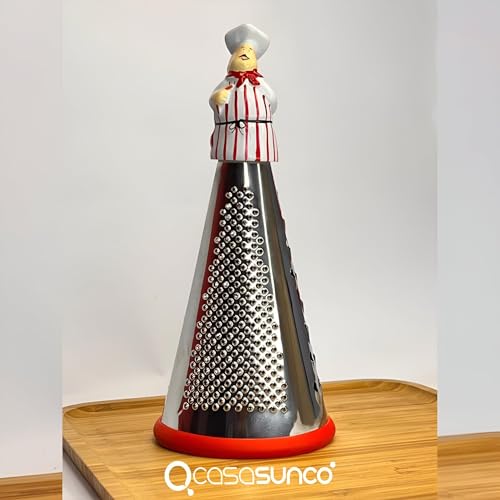 Generic - مبشرة مطبخ استانلس ستيل مقاومة للصدأ بثلاث شفرات حادة جدًا شكل الشيف، مصنوعة من خامة ستانلس 18/10 مع يد خشبية قوية سهلة التحكم وقاعدة سيلكون مانعة للانزلاق