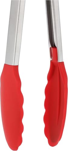 Generic - Kitchen Grill Tongs Stainless Steel Silicone Grill Tongs with Heat Resistant Silicone Handle Large Size 30cm (Red)