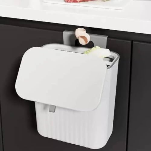 Generic - Kitchen Hanging Trash Can with Swing Top – Space Saving Cabinet Garbage Bin for Food Scraps – Easy Clean Wastebasket for Bathroom, Bedroom, or Dorm Use