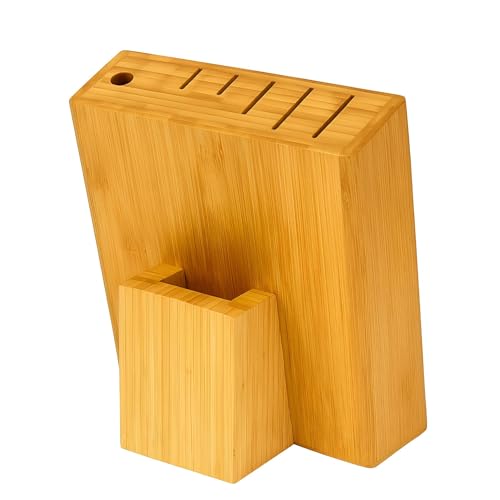 - حامل السكاكين متعدد الفتحات هذا مصنوع من الخيزران المتين، مما يجعله إضافة مرنة وطويلة الأمد لمطبخك يقاوم الأوساخ وسهل التنظيف، مما يضمن النظافة بسهولة، كل ذلك مع توفير المساحة والحفاظ على سكاكينك منظمة بكفاءة.