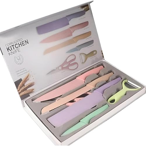 Generic - طقم سكاكين مطبخ مسننة من الفولاذ المقاوم للصدأ مكونة من 6 قطع، تتضمن سكينة الشيف ومقلاة ومقشرة ومقصات، الطقم مثالي للمطبخ وتناول الطعام