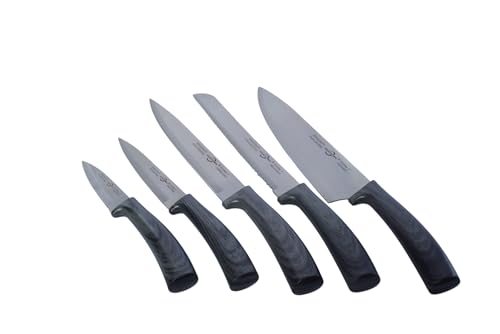 Generic - طقم سكاكين مطبخ بمقبض خشبي، 5 قطع - رمادي