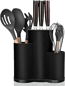 Generic - منظم سكاكين وملاعق وشوك وملاعق طبخ مع قاعدة مضادة للانزلاق لتوفير المساحة (اسود)