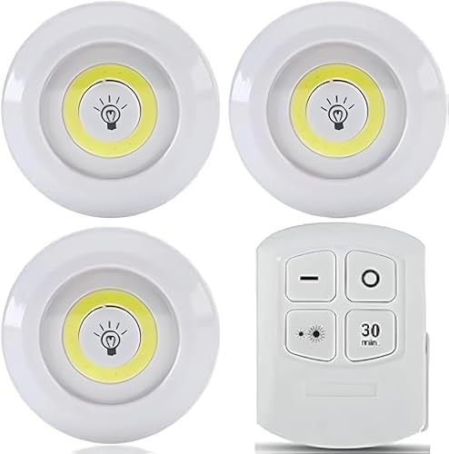 Generic - مجموعة اضاءة المطبخ - مصابيح LED لاسلكية قابلة للتحكم عن بعد، وحدات بيضاء قابلة للتعتيم 9 سم، تعمل بالبطارية، 3 قطع للخزائن