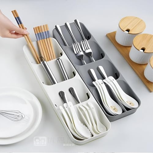 Generic - Kitchen Organiser - Space-Saving Cutlery Tray for Drawers, Efficient Utensil Holder for Spoons, Forks, and Short Knives in Modern White and Grey (2PCS)