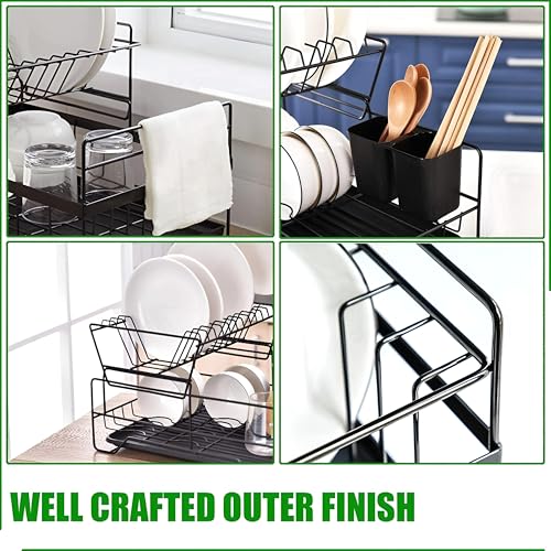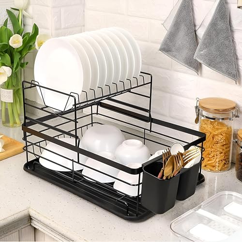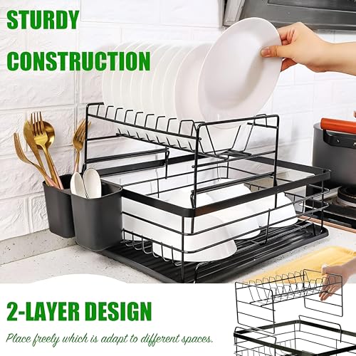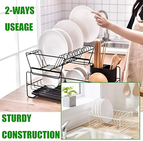 Generic - Kitchen Organizer - 2-layer Dish Drying Rack with Drainboard, Multi-purpose Plate and Dish Organizer, Includes Cutlery Holder and Detachable Drying Tray, 48 * 27 cm (Random Color)