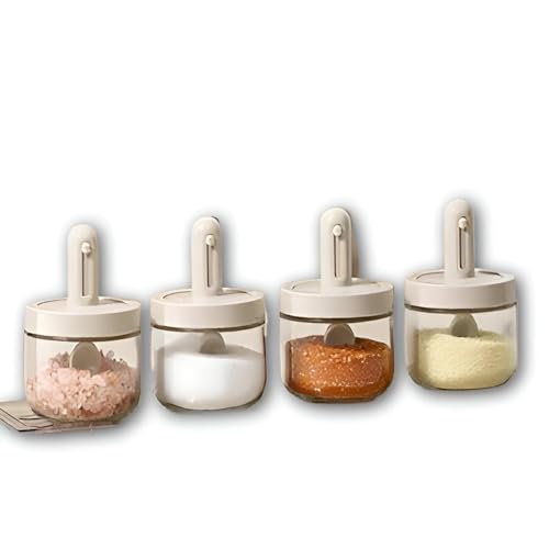Generic - Kitchen Organizer - Stylish Glass Spice Jars with Lids and Spoons, 300ml Capacity Ideal for Storing Salt, Sugar, and Seasonings, Perfect for Elegant Kitchen Design (4PCS)