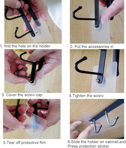 - Main accessories: 4 cup organizer hooks, 4 self-adhesive screws patches (to fix the hooks).