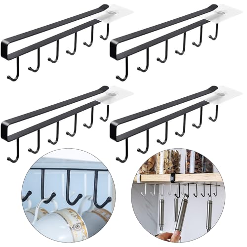 LUKANATO - Kitchen Organizer Utensil Hooks, 4 Pieces Under Cabinet Cup Rack