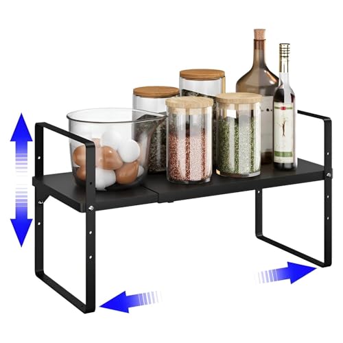 generic - Kitchen Rack - Premium black steel adjustable storage shelf, 50 cm wide, expands vertically for spices, plates, pots, fits cabinet doors, corrosion‑resistant finish, tool‑free assembly.