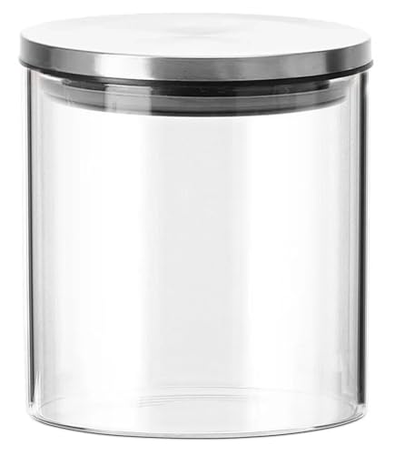 - DESIGN: Cylindrical shape with wide opening for easy access and transparent glass body for clear content visibility