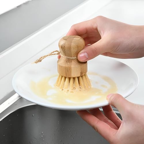 - This eco-friendly cleaning brush is crafted entirely from natural materials such as bamboo, palm, and sisal, making it fully biodegradable and environmentally sustainable, reducing plastic waste and promoting eco-conscious living.