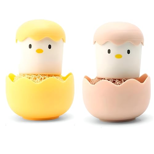 - 【Innovative Design】The portable dish cleaning brush features a fun and whimsical chicken-shaped handle with a convenient egg shell storage base that keeps your kitchen surface neat and tidy. It’s not just an effective tool, but a playful decor piece when not in use.
