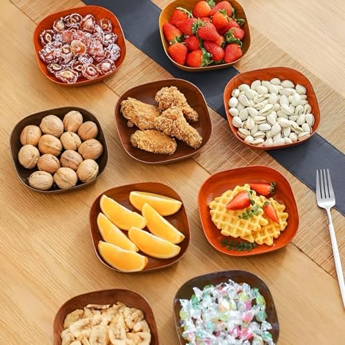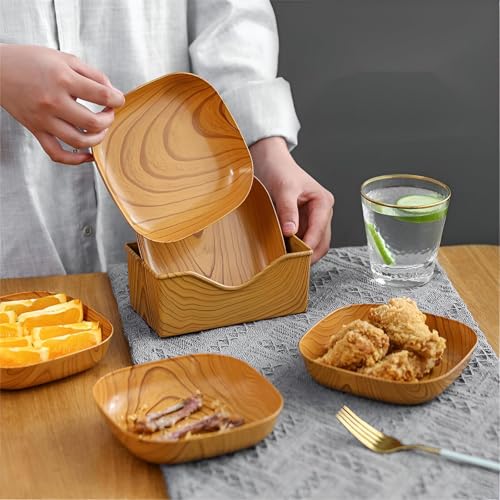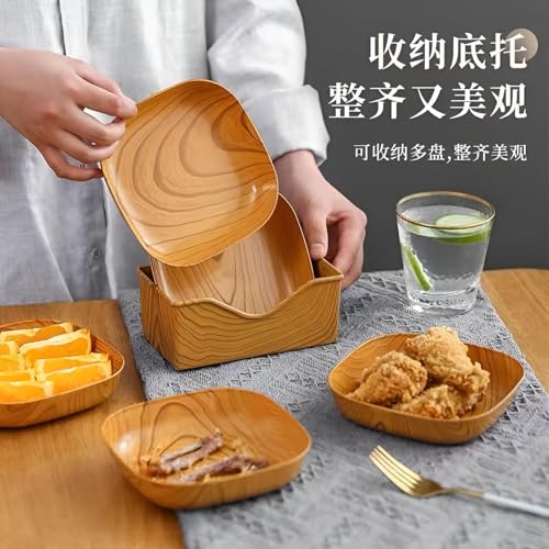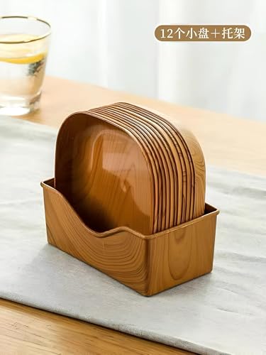 Generic - Kitchen Set - Stylish Plastic Wood-Pattern 6-Plate Collection with Convenient Serving Stand, Designed for Versatile Table Use and Bringing Refined Look to Special Occasions