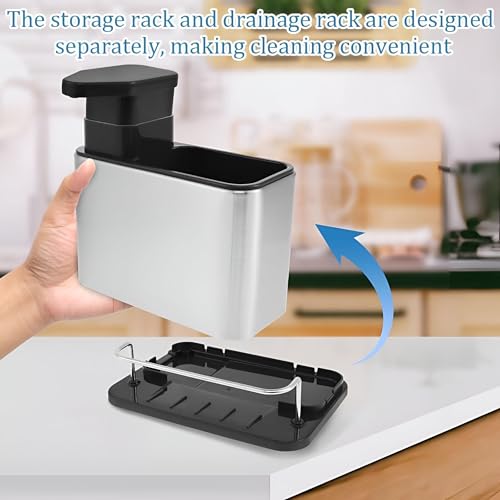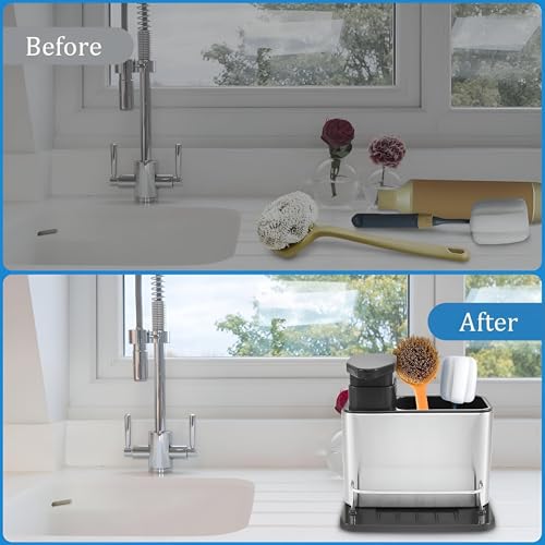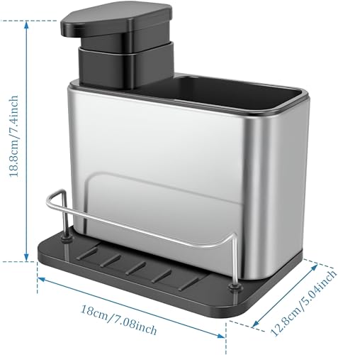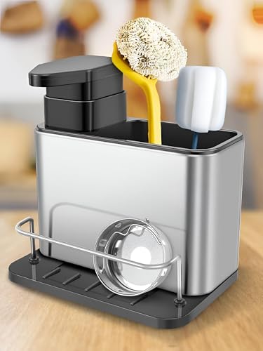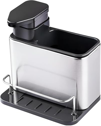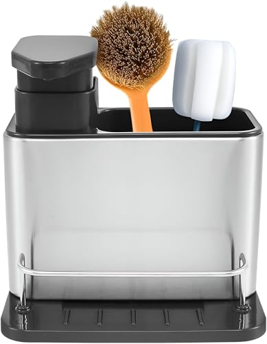 Generic - Kitchen Sink Caddy Organiser with Soap Dispenser, Stainless Steel Sponge Holder with Detachable Drain Rack, Multifunctional Dish Brush Storage