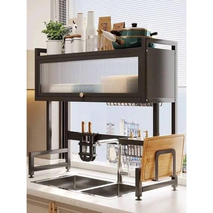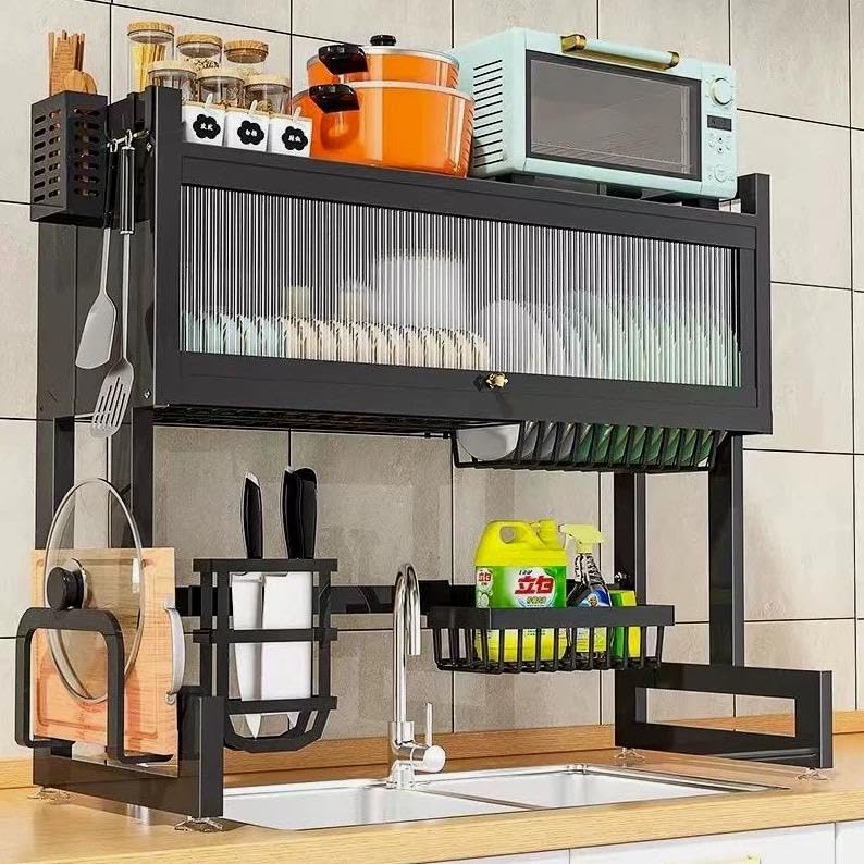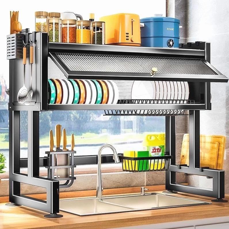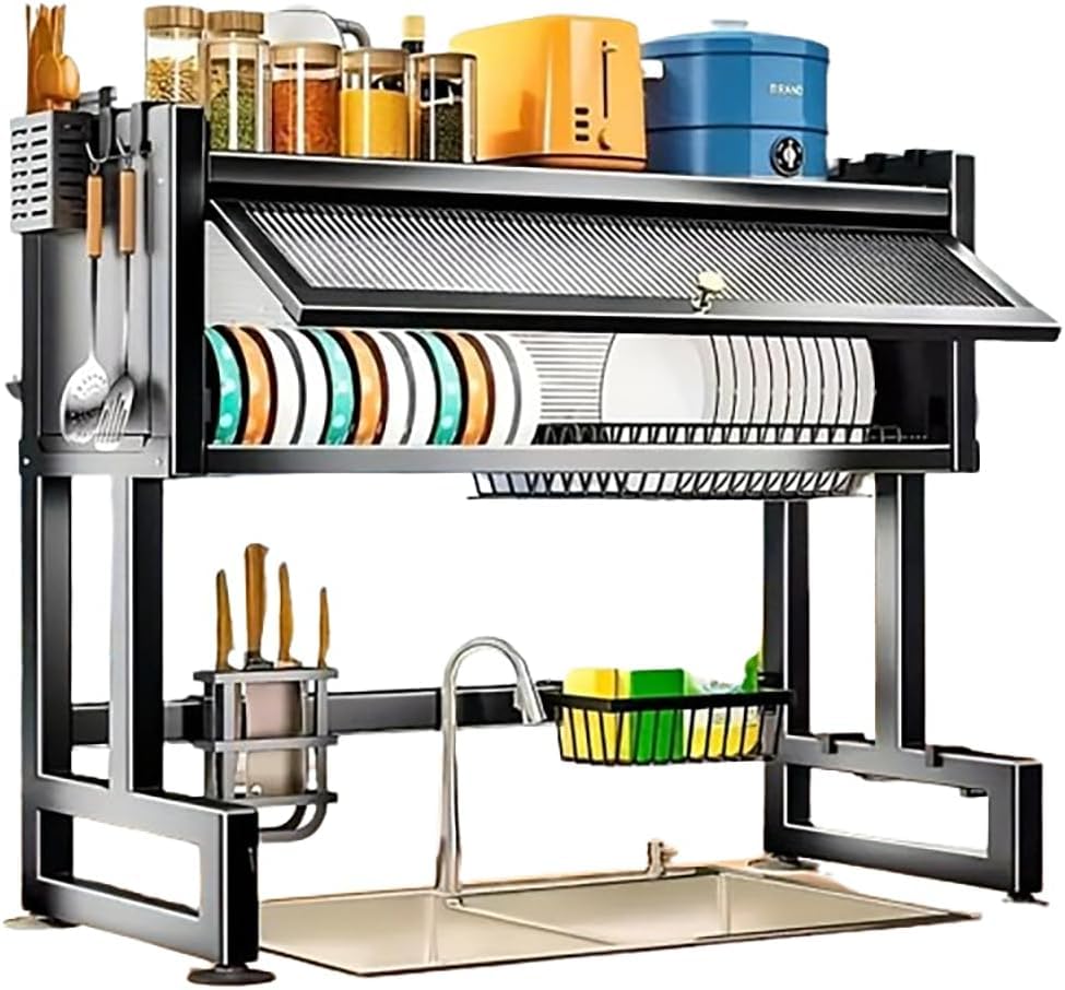 Generic - Kitchen Sink Countertop Dustproof Storage Rack with Bowl Drying Function, Holder and Black Shelf & Space-Saving