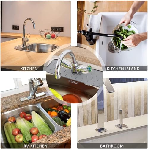 Generic - Kitchen Sink Splash Guard Mat, Silicone Faucet Splash Catcher Mat, Drip Catcher Tray with Silicone Handle, Water Drying Mat, Countertop Protector for Bathroom, RV, Granite Rods (Grey)
